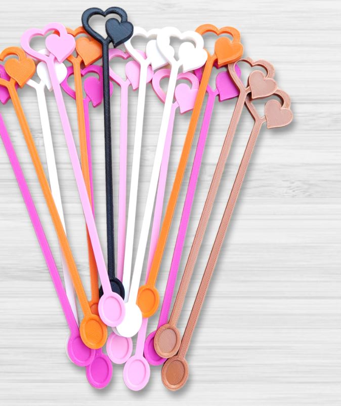 Haz que cada copa cuente la historia de tu celebración. Nuestros revolvedores impresos en 3D son el detalle de personalización definitivo para casamientos, cumpleaños, aniversarios y eventos corporativos.